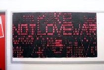 Installed on the exterior wall of the Pollak Building, one of Virginia Commonwealth University’s design facilities, this 16 foot by 4 foot typographic installation was made of treated plywood, white paint, galvanized nails, clear plastic straws, and pink and white