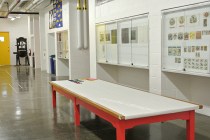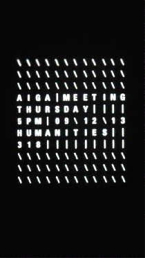 Alphabet Shift is an interface in which the physical affordances of pushing and pulling facilitate the creation of messages in a public space. The piece has been installed on the third floor of the Pollak Building, the main library at