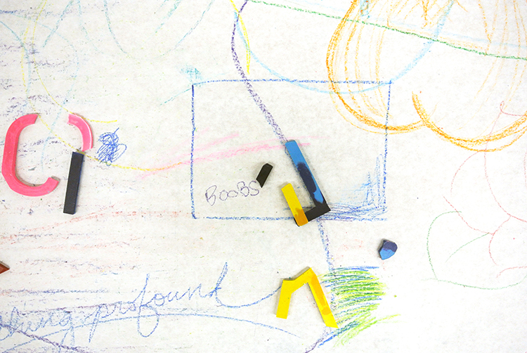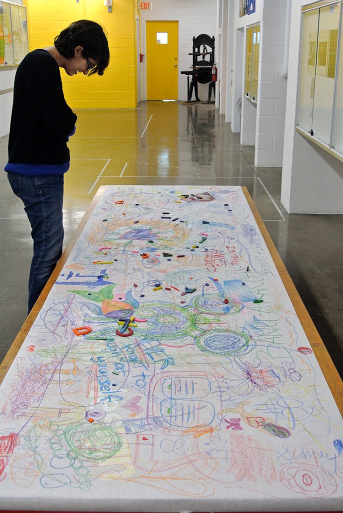 Placed in the high-stress environment of a design department in the midst of the last few weeks of the semester, this fleeting crayon installation is a reminder to get back to what matters — making with your hands, interacting with others, and exercising your imagination.